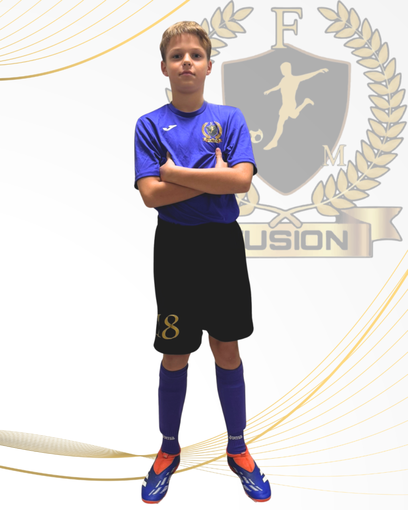 - Fioletowa koszulka oraz getry, czarne spodenki